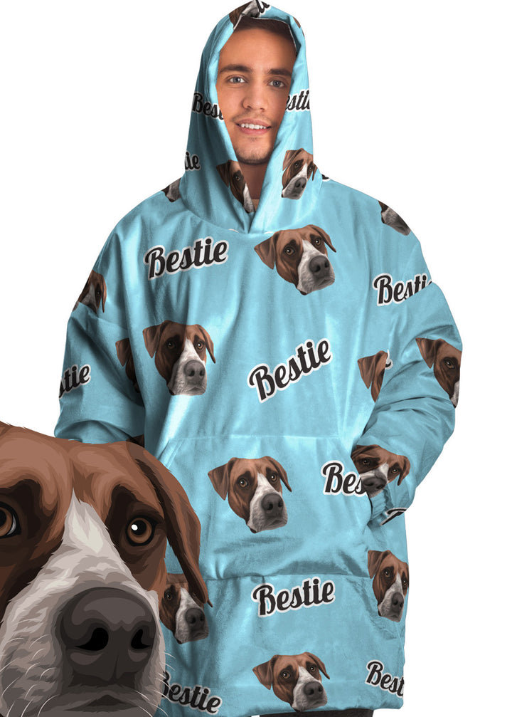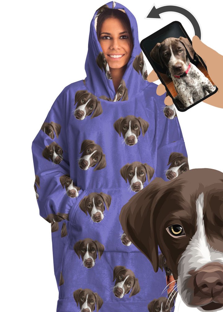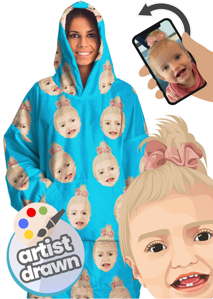 Our artists draw your favourite face from scratch in our popular vector style? No grainy photos or cheap filters here! Our artwork is especially designed so that it looks great on the thick plush hoodie blanket fabric. Just check our reviews!